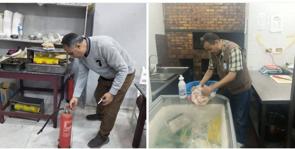 وجهت اللجنة عدد ( 6 ) انذرات لتلافى ملاحظات عدم توافر اشتراطات السلامة والصحة المهنية والاشتراطات البيئية والصحية ولسرعة إنهاء إجراءات التراخيص وتصاريح الاشغال ،وتم اعدام بعض اللحوم والدجاج والمخبوزات لتغيرها فى الخصائص الطبيعية ولسوء التخزين .