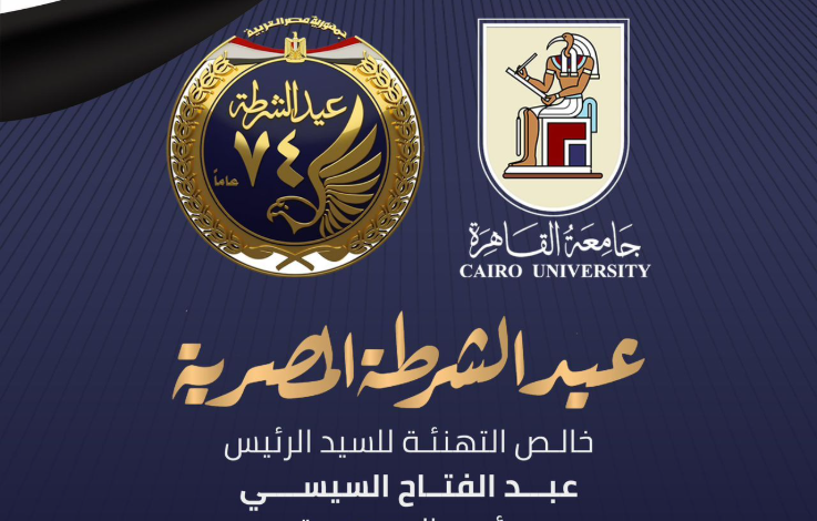رئيس جامعة القاهرة يهنئ فخامة رئيس الجمهورية ووزير الداخلية وقيادات ورجال الشرطة بمناسبة الاحتفال بعيد الشرطة الرابع والسبعين