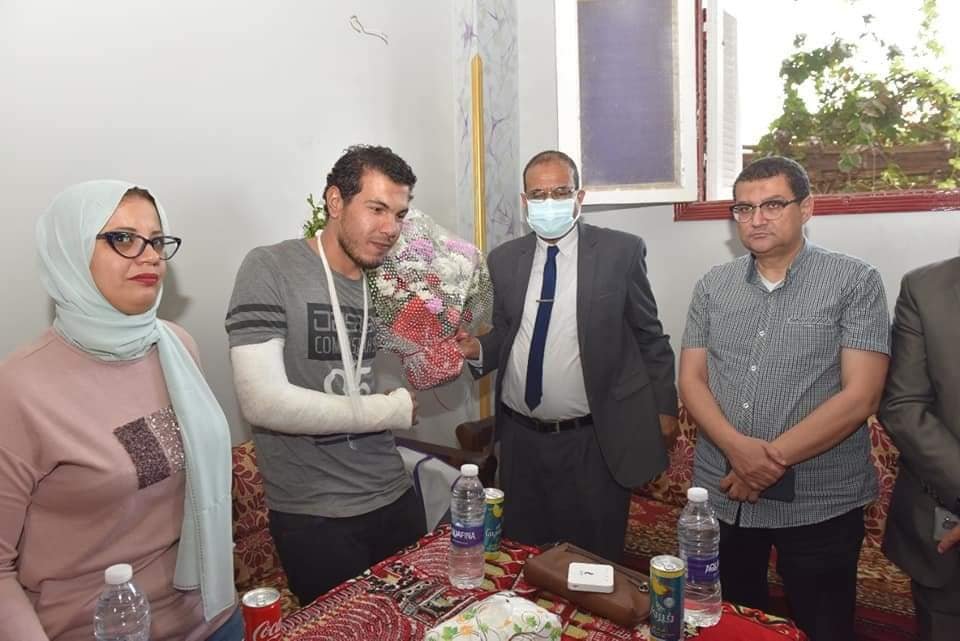زار الدكتور مصطفي عبد الخالق رئيس جامعة سوهاج الطبيب الديب السيد محمد الديب طبيب مقيم بقسم الباطنة العامة بالمستشفى الجامعي وذلك للاطمئنان علي حالته الصحيه بمنزله بقرية بناويط التابعة لمركز المراغة، بعد الاعتداء عليه من مرافقي مريضة، مما ادي الي اصابته بكسر في الساعد الايمن وعدد من الكدمات المتفرقه بالجسم .