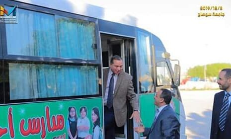 أحتج سائقيخط جامعة سوهاج الجديدة بالكوامل علي تفعيل مبادرة رشاد عبد الغني رجل الأعمال بتحصيص 10 أتوبيسات لنفل طلبة وطلاب جامعة سوهاج لأقرب نقطة وصول مجانا ولاقت المبادرة المميزة ترحيبا من جميع القيادات الحامعية والطلبة