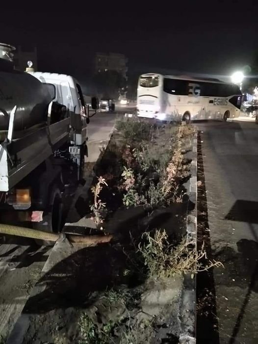 كما تم تكثيف أعمال رى الأشجار بطريق النصر البحرى ومدخل طهطا البحرى خلال الفترة المسائية .