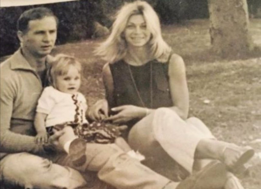 نشرت النجمة شيرين رضا صورة لها بالأبيض والأسود بصحبة والديها محمود رضا وروزا من طفولتها.