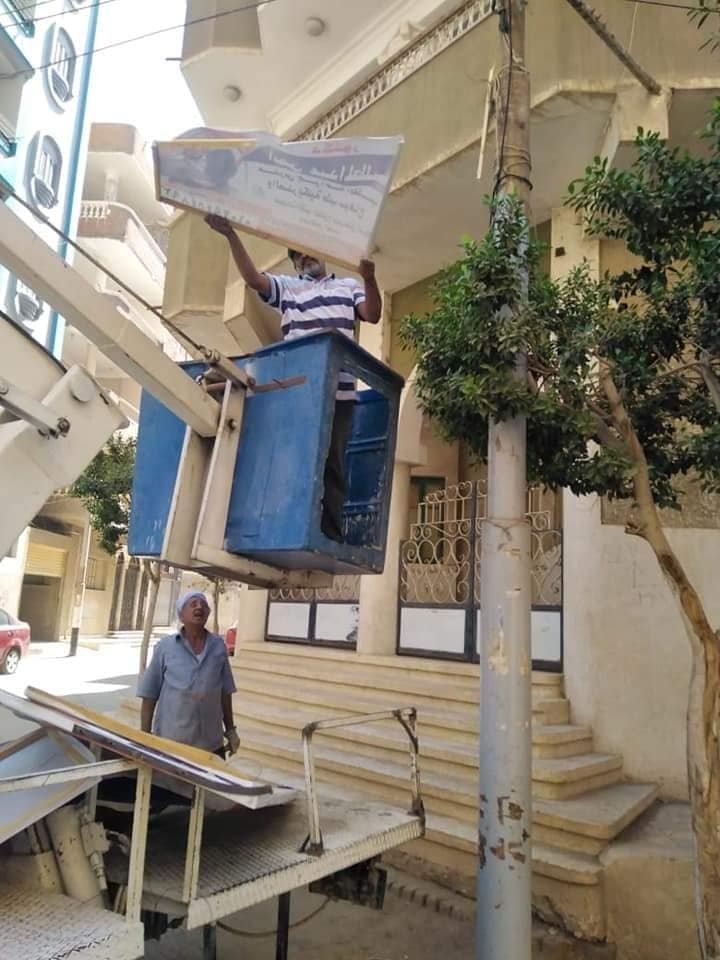 طهطا… إستمرار إزالة الإعلانات المخالفة بالشوارع والميادين