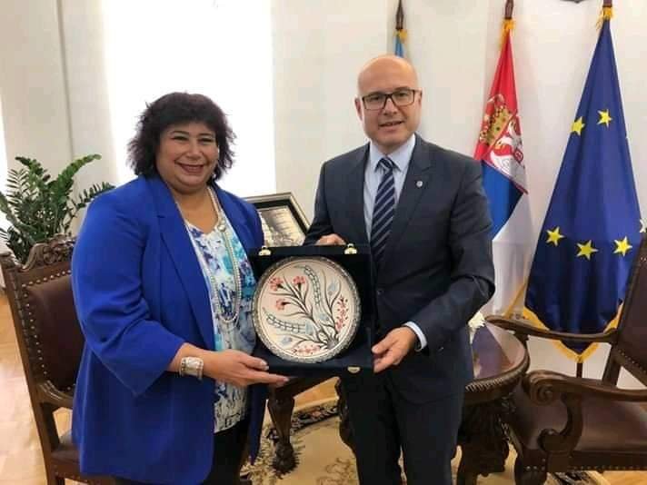 وكان ذلك بحضور سفير مصر في صربيا عمرو الحويلي حيث بحثا سبل تعزيز التعاون المشترك في مجال الأنشطة الفنية والثقافية ،