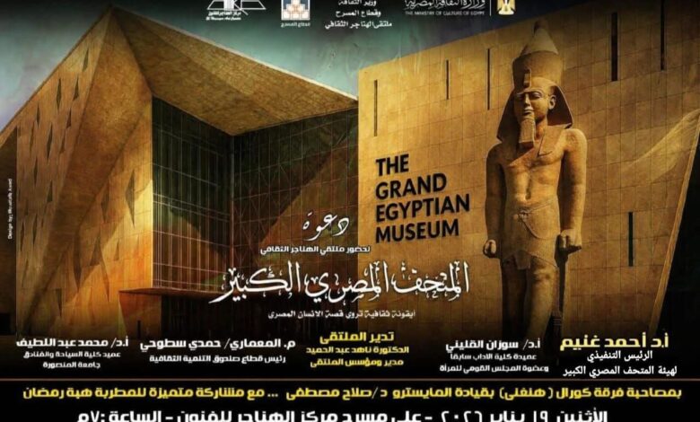 غدا .. “المتحف المصري الكبير أيقونة ثقافية تروي قصة الإنسان المصري” بملتقى الهناجر الثقافي