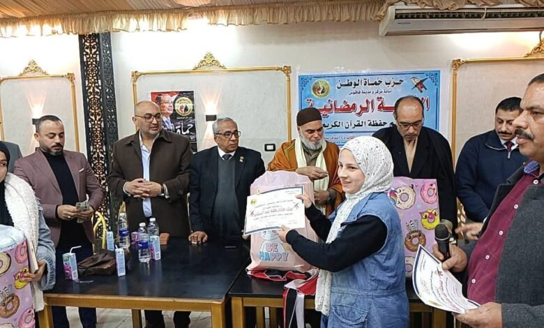 نظّمت أمانة حزب حماة الوطن بمركز فاقوس احتفالية لتكريم حفظة القرآن الكريم، وذلك برئاسة الدكتور هيثم أبو سمرة أمين الأمانة، في إطار حرص الحزب على دعم وتشجيع النشء والشباب على حفظ كتاب الله والتمسك بالقيم الدينية الصحيحة.