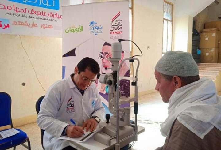 الرئيس عبدالفتاح السيسى رئيس الجمهورية للكشف عن مسببات ضعف وفقدان الإبصار والتى ينفذها صندوق تحيا مصر بالتعاون والتنسيق مع القوات المسلحة وجمعية الأورمان بالمحافظة بمركز شباب الباجور خلال الأسبوع الماضي .