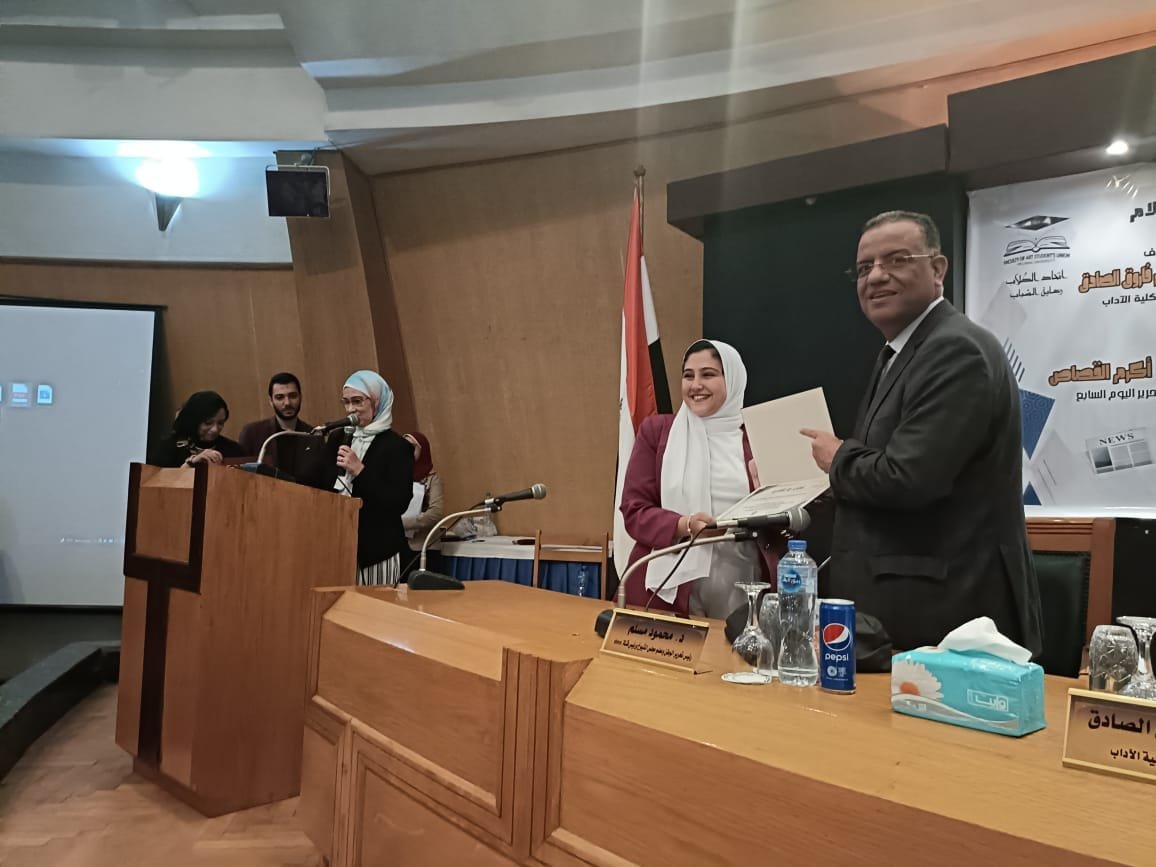 وفي ختام فعالية مناقشة مشروعات التخرج قامت الأستاذة الدكتورة سحر فاروق الصادق رئيس قسم الإعلام بكلية الاداب بتسليم د. محمود مسلم رئيس تحرير الوطن وعضو مجلس الشيوخ ورئيس قناة dmc وأكرم القصاص رئيس تحرير اليوم السابع وعماد الدين حسين رئيس تحرير الشروق وعضو مجلس الشيوخ، درع الكلية تقديرا لهم.