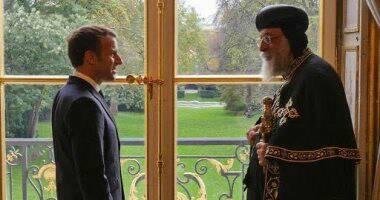 رحب الرئيس الفرنسي إيمانويل ماكرون بقداسة البابا تواضروس الثاني مساء اليوم بقصر الإليزيه.