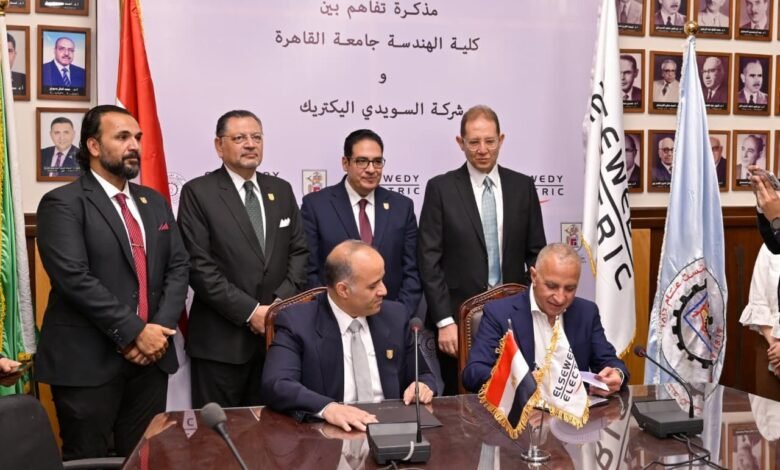 وعلى هامش انطلاق اليوم الرابع للملتقي بكلية الهندسة، شهد الدكتور محمد سامي عبد الصادق رئيس جامعة القاهرة، توقيع مذكرة تفاهم بين كلية الهندسة وشركة السويدي إليكتريك، بالقاعة الرئيسية بكلية الهندسة، والتي وقعها كل من الدكتور محمد شوقي القائم بأعمال عميد كلية الهندسة، والمهندس أحمد السويدي الرئيس التنفيذي والعضو المنتدب لمجموعة السويدي إلكتريك، بحضور الدكتور محمد رفعت نائب رئيس جامعة القاهرة لشئون خدمة المجتمع وتنمية البيئة، والمهندس إيهاب الهادي نقيب مهندسي الجيزة، ووكلاء الكلية .