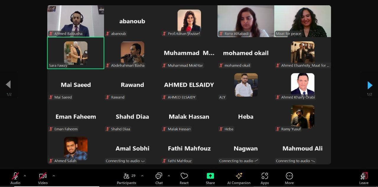 ماعت تناقش تداعيات التضليل المعلوماتي على حقوق الإنسان في المنطقة العربية