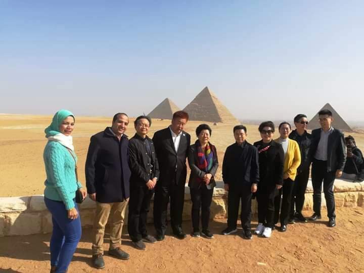 حيث رافق الوفد الصينى خلاله جولته السياحية ممثلى الادارة العامة للسياحة بمحافظة الجيزة ومدير منطقة اثار الهرم وادارة العلاقات العامة والاعلام بالمحافظة .
