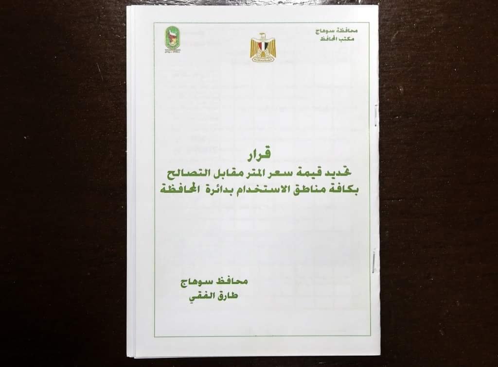 محافظة سوهاج تصدر كتيب توضيحي بقرار تحديد قيمة سعر المتر مقابل التصالح
