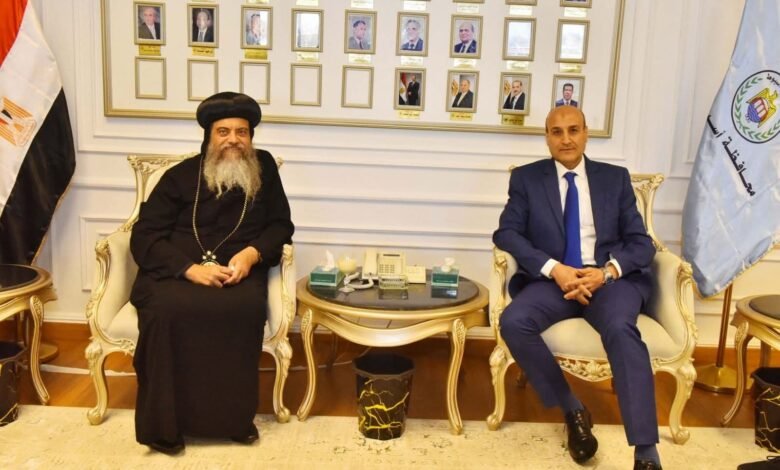 محافظ أسيوط يستقبل أسقف الأقباط الارثوذكس بمنفلوط للتهنئة بمناسبة توليه منصبه