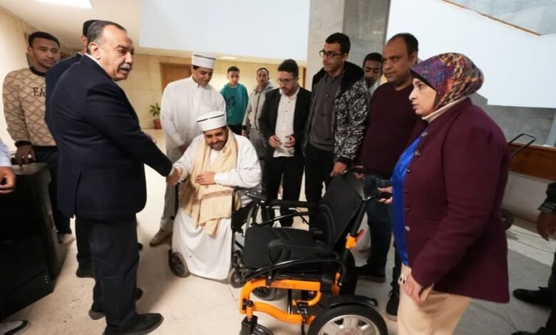 محافظ أسيوط يسلم كرسياً متحركاً كهربائياً لمواطن من ذوي الإعاقة لتيسير حياته اليومية
