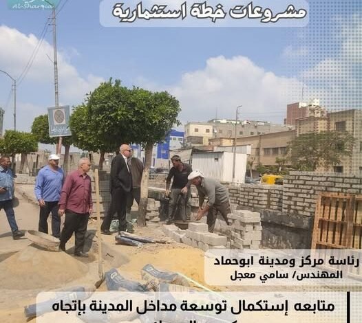 تابع المهندس سامي معجل رئيس مركز ومدينة أبو حماد إستكمال أعمال توسعة مداخل المدينة وإنشاء ممشى بالخطة الإستثمارية للعام ٢٠٢٦/٢٠٢٥، وذلك بمدخل المدينة في الإتجاه من كوبري السمك وصولاً إلى كوبري المركز، بطول ٢٠٠ متر تقريباً، وبنسبة تنفيذ وصلت ٧٠٪ وبتكلفة مالية قدرها مليون و٥٠ ألف جنيهاً،