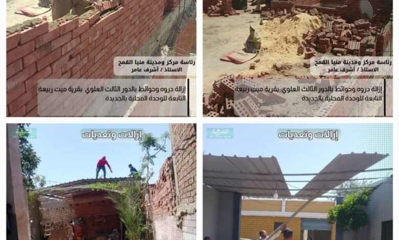 وقام المحاسب اشرف عامر رئيس مركز ومدينة منيا القمح بإزالة ٣ حالات بناء مخالف بمساحة إجمالية ٢٤٠ متراً، الأولى عبارة عن إزالة دروة وحوائط بالدور الثالث العلوي على مساحة ١٢٠ متراً بقرية ميت ربيعة، والحالة الثانية والثالثة عبارة عن إزالة سقف جمالون على مساحة ٦٠ متراً ومظلة على قوائم معدنية على مساحة ٦٠ متراً كلهما بقرية ميت بشار وذلك بنطاق الوحدة المحلية بالجديدة، حيث تمت الإزالات كلياً ايضا فى المهد