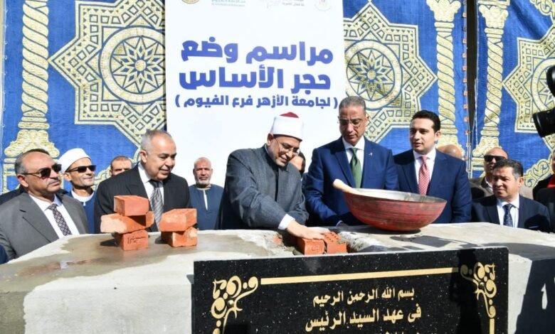 محافظ الفيوم ورئيس جامعة الأزهر يضعان حجر الأساس لفرع الجامعة بالفيوم
