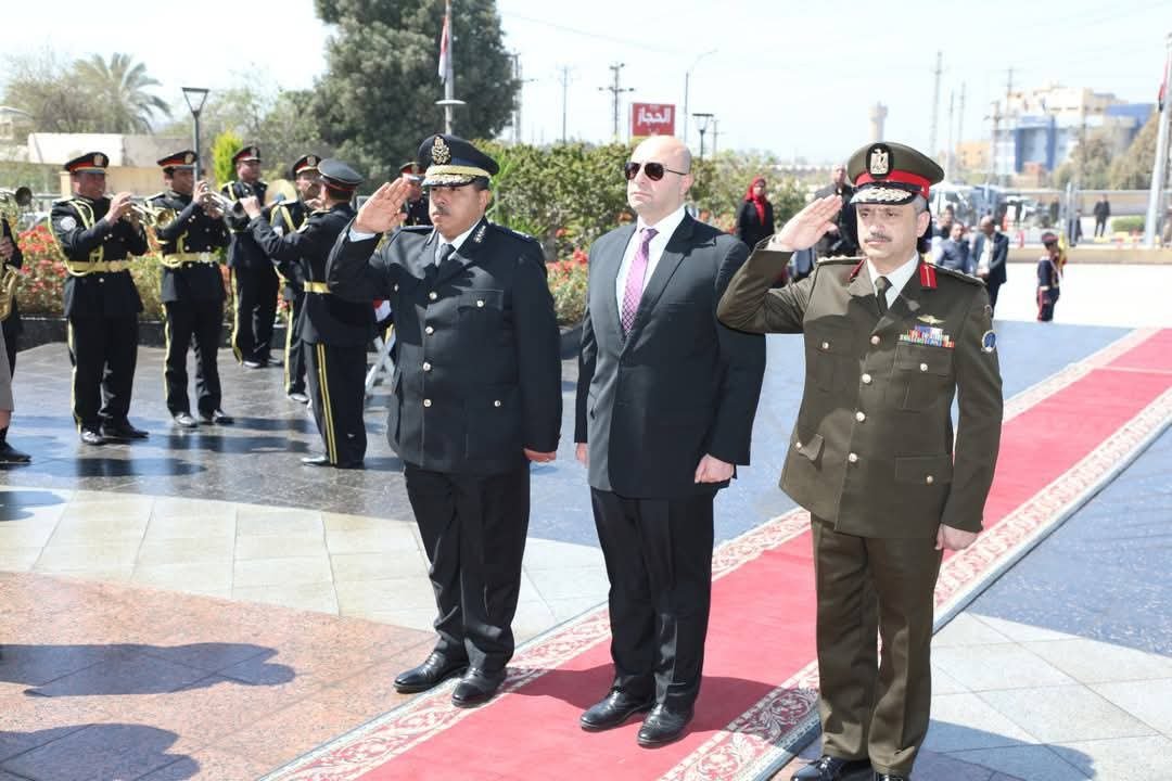 وعقب الانتهاء من المراسم،قرأ محافظ بني سويف ومرافقوه الفاتحة ترحماً على شهداء الواجب من أبناء مصر المخلصين على مرالعصور،ثم أداء سلام الشهيد والنشيد الوطنى بمصاحبة عزف الموسيقات النحاسية،حيث صافح المحافظ الحضور ،موجها لهم التهنئة ولكافة أبناء وأهالي وقيادات بني سويف بهذه المناسبة ،متمنيا أن يكون شعب بني سويف كعادته دائما ساعدا قويا للدولة في بناء مصر الجديدة واستكمال مسيرة التنمية التي بدأتها الدولة المصرية خلال السنوات العشر الماضية تحت قيادة فخامة السيد الرئيس عبد الفتاح السيسي رئيس الجمهورية
