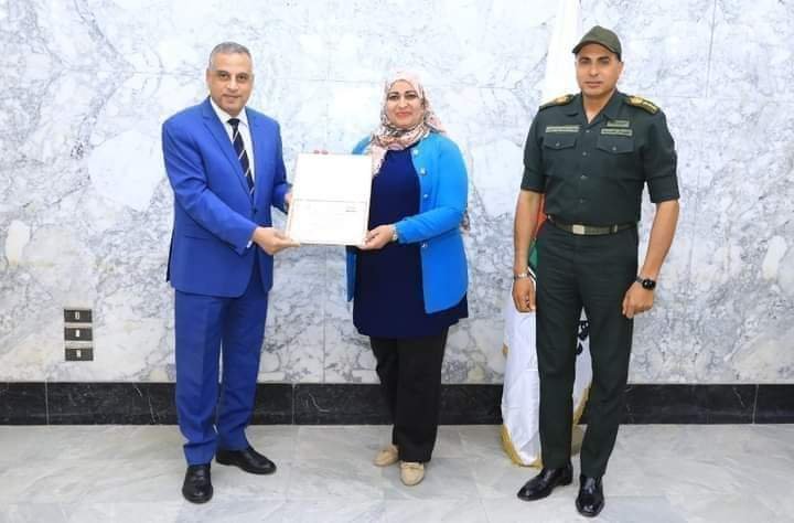كرم اللواء طارق الفقي محافظ سوهاج رئيس مركز ومدينة المنشاة فريدة سلام لتميزها في إدارة مشكلات مركز المنشاة المزمنة وكنموذج قيادي يدير العمل بطريقة مبتكرة