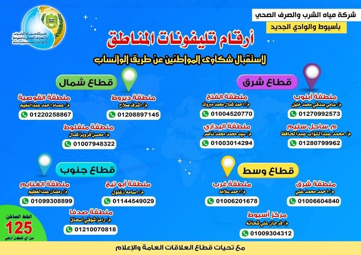 مياه أسيوط تخصص أرقام واتساب لخدمة المواطنين على مستوى المحافظة