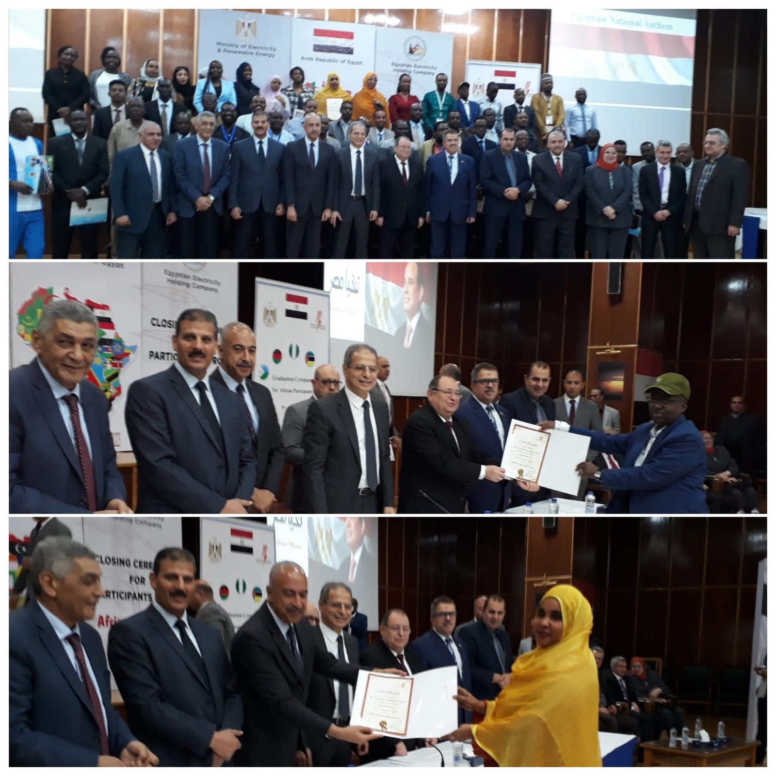 نائب وزير الكهرباء والطاقة المتجددة يشهد إحتفالية تخريج 46 متدرب أفريقى من 9 دول افريقية