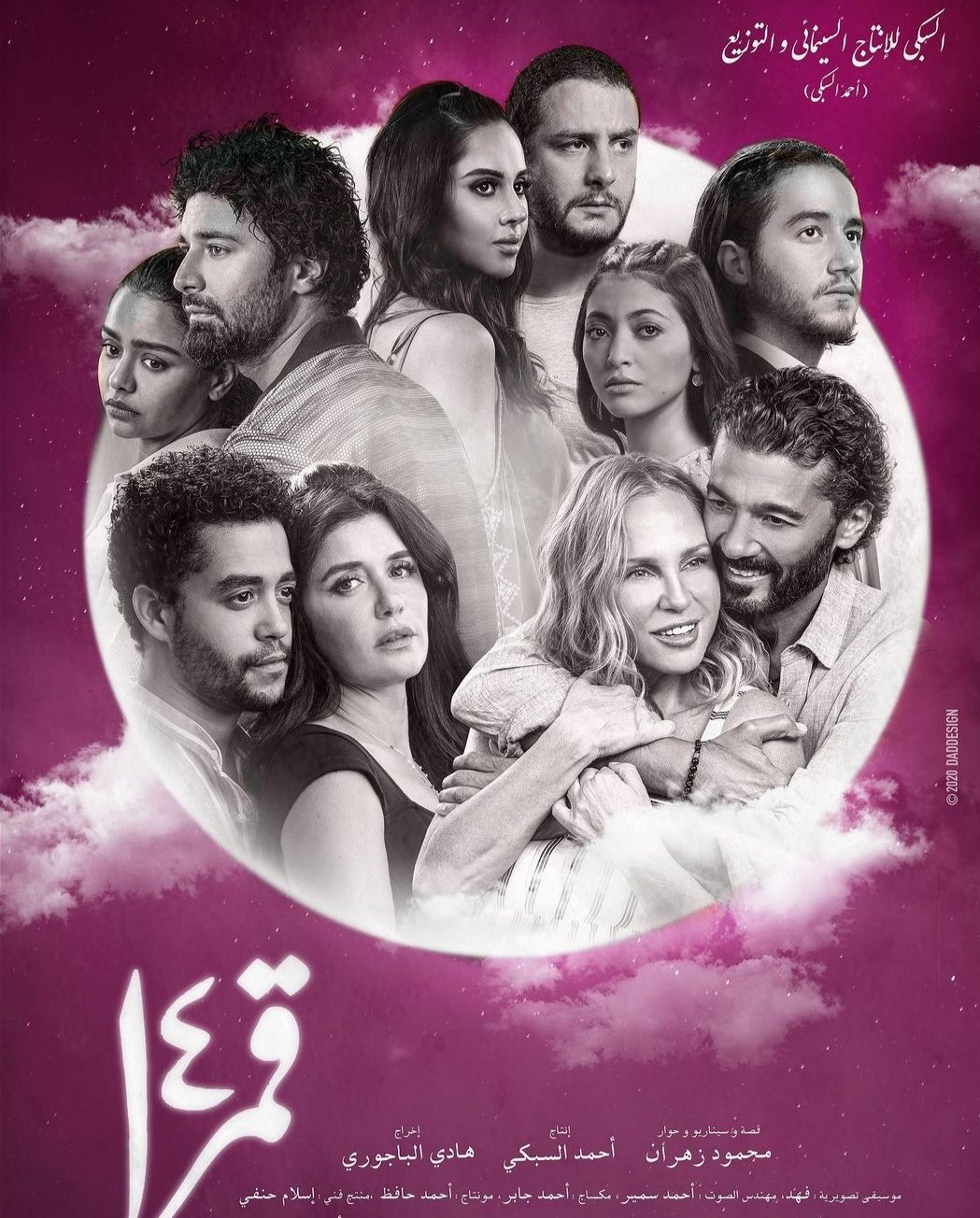 ويضم "فيلم قمر 14" عددًا من النجوم منهم خالد النبوي، غادة عادل، أحمد الفيشاوي، ياسمين رئيس، شيرين رضا، بيومي فؤاد، أحمد حاتم، أسماء أبو اليزيد، أحمد مالك ومي الغيطي، فيلم "قمر 14" من تأليف محمود زهران، وإخراج هادي الباجوري