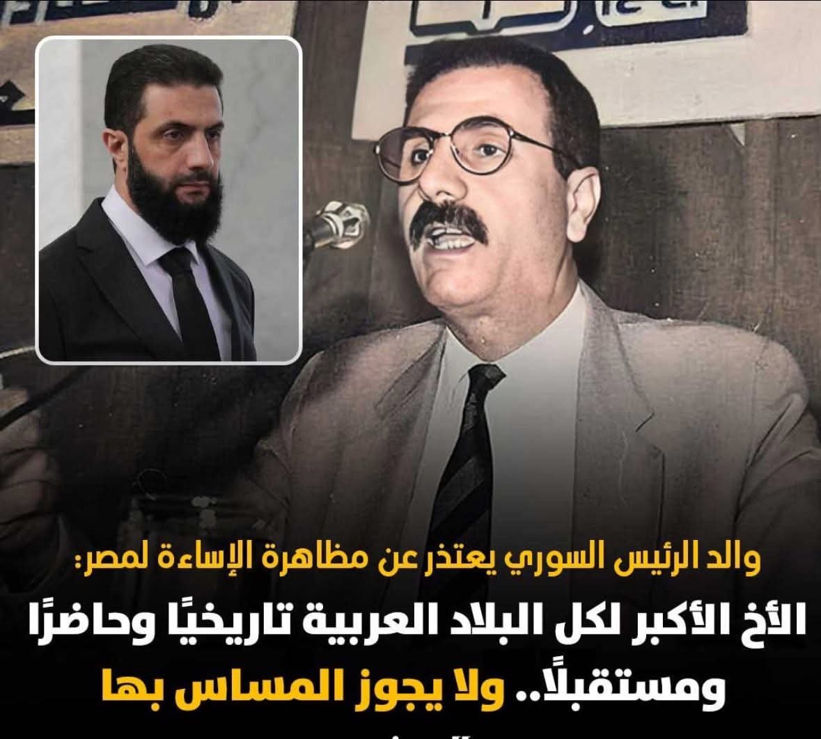 وأكد الشرع أن الإساءة لمصر هي إساءة للشام كله موضحا أن مصر كانت وستظل الأخ الأكبر للأمة العربية وأن قوتها من قوة العرب جميعا وأشار إلى العلاقات التاريخية التي جمعت الشعبين بداية من التضامن في العدوان الثلاثي عام 1956 مرورا بتجربة الوحدة بين مصر وسوريا وصولا إلى حرب أكتوبر 1973 التي خاضها الجيشان معا كتجسيد للوحدة العربية