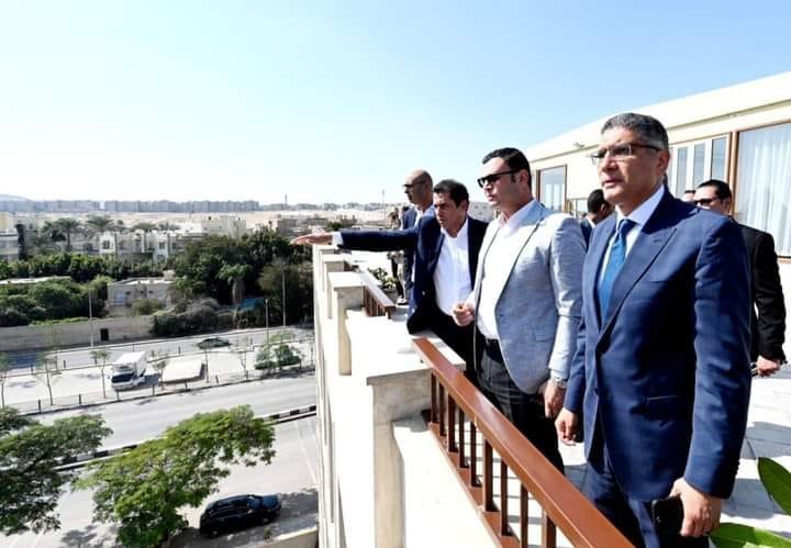 وزير الإسكان ومحافظ الجيزة يعقدان اجتماعاً بالمنطقة المحيطة بالأهرامات لاستعراض مخطط تطويرها