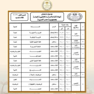 وزير التربية والتعليم يعتمد جدول امتحانات شهادة إتمام الثانوية العامة للدور الأول 2026