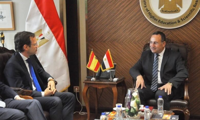 وزير التعليم العالي يبحث سبل تعزيز التعاون مع سفير مملكة إسبانيا ووفد جامعة IE الإسبانية