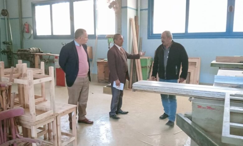 حيث أستهل وكيل الوزارة جولته بزيارة مدرسة اسيوط الثانوية الميكانيكية ” تأسيس عسكرى ” لمتابعة أعمال الصنيع بقسم الاخشاب والنجارة ضمن مبادرة تدوير الرواكد وتعظيم الاستفادة منها وتابع سير العمل ببعض أقسام و ورش المدرسة وتابع التدريب العملي للطلاب بورش النجارة وتشغيل الماكينات وكيفية تصنيعهم للمنتجات من خلال تدوير الرواكد لتصنيع ” المقاعد وغرف النوم والباب والشباك والسلالم والترابيزات وخلايا النحل ومستلزمات المناحل ” مشيرا الى ضرورة تسريع وتيرة العمل لاستغلال المخلفات الخشبية ورواكد المدارس الغير مستغلة و المتهالكة والتى تم تجميعها من مدارس المحافظة لتصنيع المنتجات الخشبية والأثاث المنزلى ومستلزمات الديكور الحديث تحت إشراف المعلمين المتخصصين بالمدرسة مشيدا بالمنتجات والمصنوعات وجودتها ورخص أسعارها بالمقارنة مع نظيراتها بالاسواق تمهيدا للمشاركة فى المعارض المختلفة .