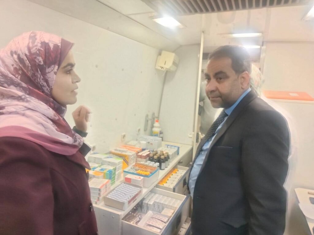 وخلال الجولة التي رافقته فيها الدكتورة مروة حسانين، مدير إدارة القوافل الطبية بأسيوط، اطمأن وكيل الوزارة على جاهزية الفريق الطبي المتواجد، والذي يضم نخبة مدربة من أخصائيي الباطنة والتمريض والصيادلة. وتابع سيادته آليات التعامل مع الحالات الصحية البسيطة، والتي شملت تقديم الكشوفات لمصابي نزلات البرد، والدوخة، وآلام المفاصل، واضطرابات الجهاز الهضمي، بالإضافة إلى التعامل الفوري مع الجروح السطحية وحالات الإجهاد العام.