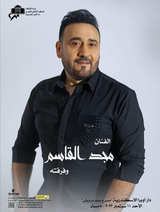 يحيي المطرب السوري مجد القاسم بصحبة فرقته الموسيقية يوم الأحد الموافق الحادي عشر من سبتمبر الساعة الثامنة مساء حفلة جديدة ضمن برنامج مهرجان دار اوبرا الإسكندرية على مسرح سيد درويش التابع لوزارة الثقافة المصرية.