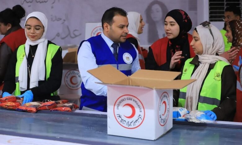 53 طالبا بجامعة القاهرة يشاركون الهلال الأحمر المصري في إعداد قافلة “زاد العزة