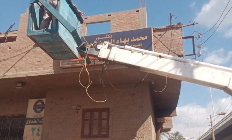 حملة مكبرة لإزالة الإعلانات العشوائية بقرية الواسطى محافظة أسيوط