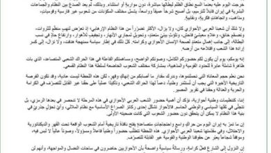 وجهت التنظيمات الوطنية الأحوازية، كحزب التضامن الديمقراطي الأهوازي، التيار الوطني العربي الديمقراطي في الأحواز، جبهة الأحواز الديمقراطية، الجبهة الديمقراطية الشعبية…
