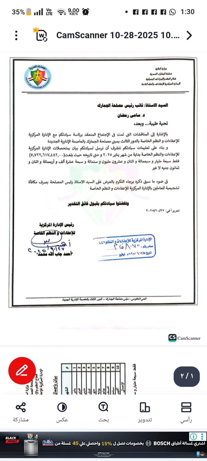 «٧.٧ مليار جنيه» متحصلات الإدارة المركزية للإعفاءات والنظم الخاصة بالجمارك للعام الجاري