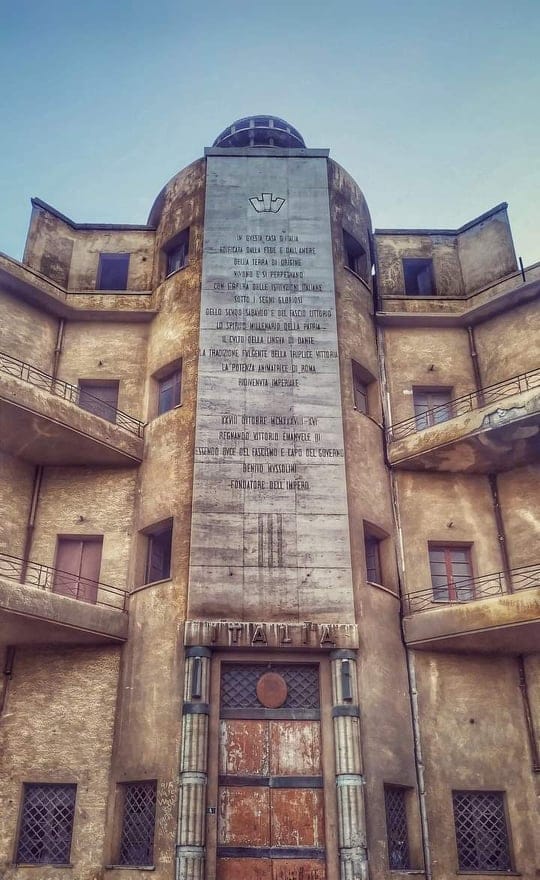 تم بناء منزل الزعيم موسوليني في عام 1936، قبل اندلاع الحرب العالمية الثانية. حينها كان موسوليني يطمح إلى السيطرة على العالم، واعتقد أنه بحاجة إلى مقر للحكم يتوسط العالم، ولذلك أنشأ منزلاً في مدينة بورسعيد ليكون مركزاً لإدارة حكمه المزعوم.
