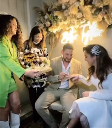 وبالفعل تم ذلك في جو من المرح والسعادة سيطر على رنا رئيس وخطيبها وأصدقائهما الذين حضروا مع العريس خصيصا للاحتفال بالخطوبة داخل الاستوديو.