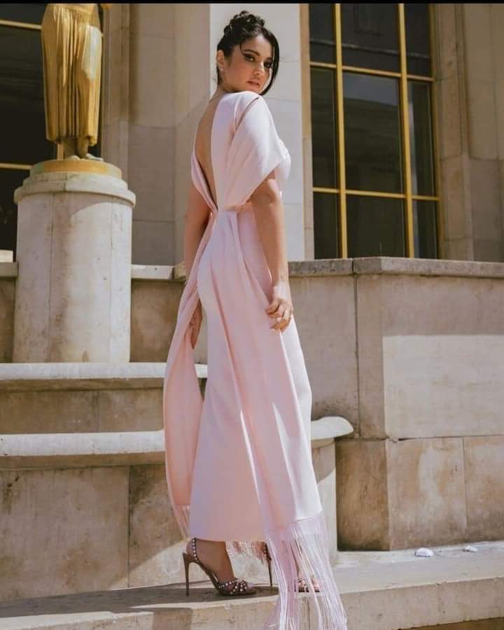 ومكياجها الهادىء الرقيق المتناسق مع بشرتها الرقيقة وفستانها الرقيق لاظهار ملامحها بشكل مميز ولافت للنظر ،