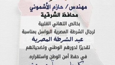 محافظ الشرقية الرئيس السيسي ورئيس مجلس الوزراء ووزيرالداخلية بعيد الشرطة