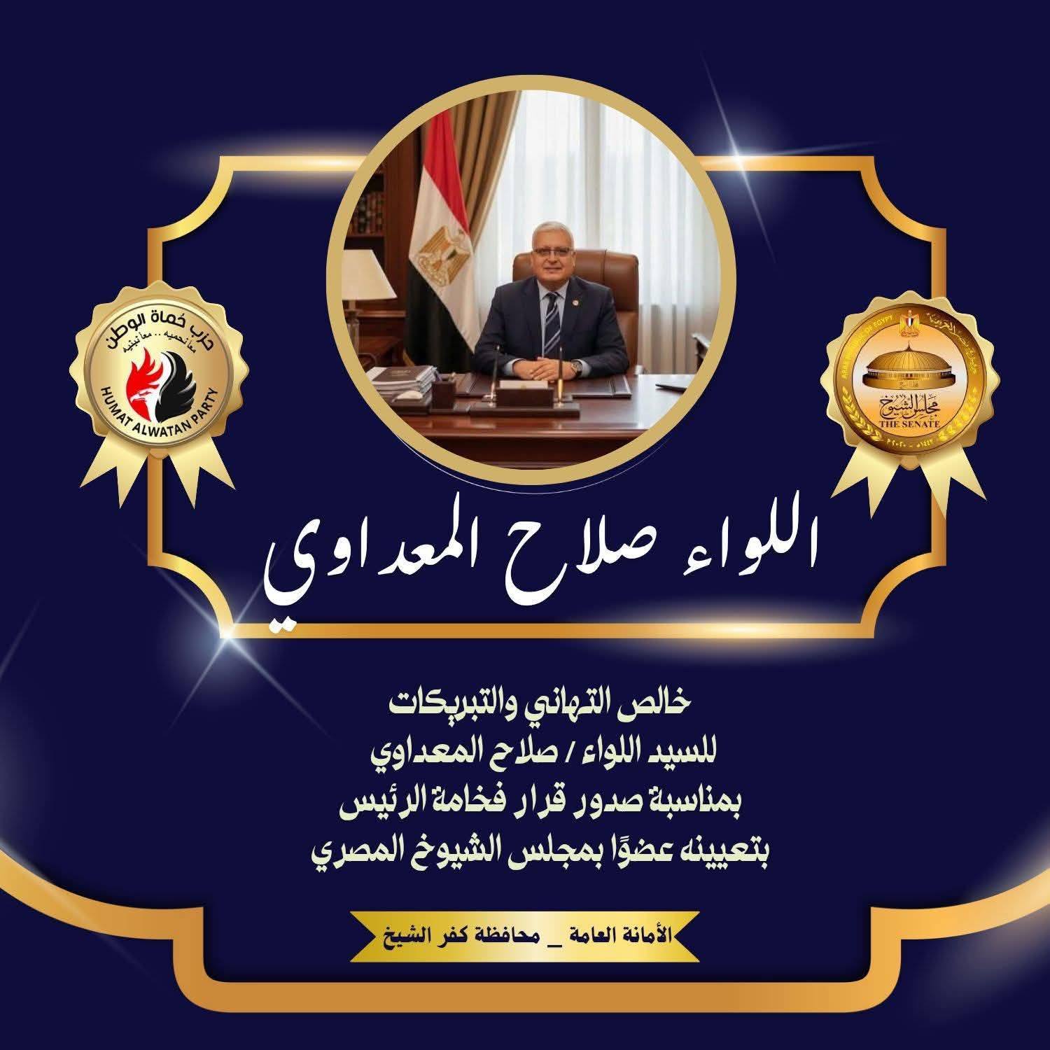 اللواء صلاح المعداوى يشكر الرئيس السيسى بعد قرار تعينيه فى مجلس الشيوخ