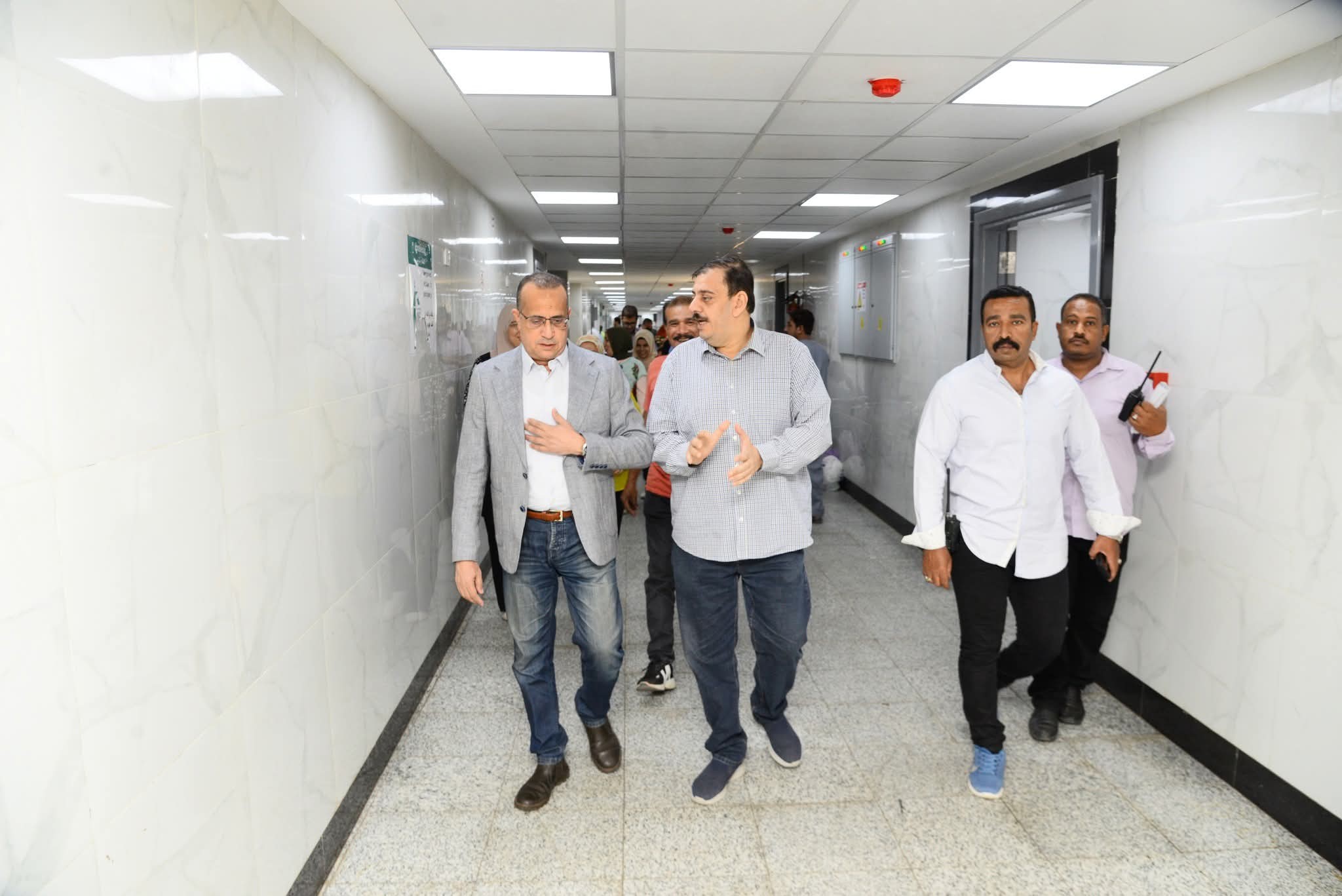 عميد كلية الطب ورئيس مجلس إدارة المستشفيات الجامعية يجري جولة تفقدية بالاستقبال العام بالمستشفى الرئيسى