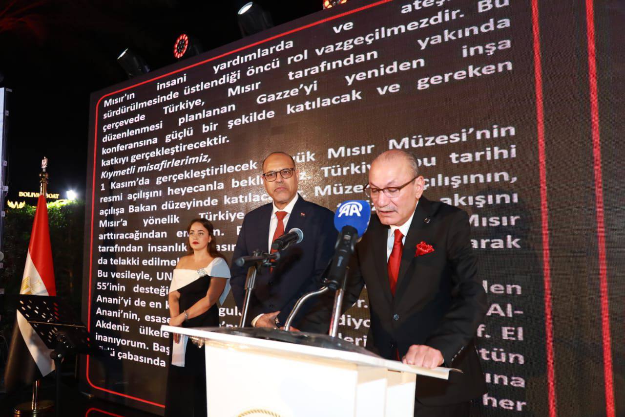 وفي كلمته في الحفل، صرح السفير التركي بالقاهرة صالح موطلو شن أن الذكرى الـ 102 لتأسيس الجمهورية التركية هذا العام دلالةً خاصة لكلٍّ من تركيا ومصر، إذ يصادف عام 2025 الذكرى المئوية لتأسيس العلاقات الدبلوماسية بين البلدين. وذكر السفير شن أنه تحت قيادة وإرادة مشتركة للرئيسين رجب طيب أردوغان وعبد الفتاح السيسي، وسعت الدولتان علاقاتهما وعمقتاها في السنوات الأخيرة عبر مجال واسع، من التجارة والسياحة إلى الثقافة والفنون.